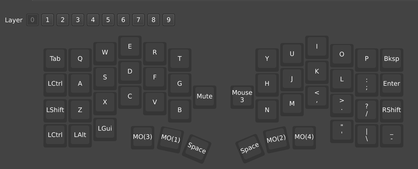 Cornix LPのキーマップはいまのところこんな感じに落ち着いた。 右手親指にレイヤ1およびレイヤ3への切り替え、左手...